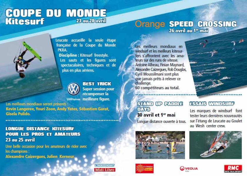 Du samedi 23 avril au dimanche 1er mai, Chinook Leucate participe au village d’essais windsurf organisés durant le Mondial du Vent sur le spot du Goulet (étang de Leucate/Wesh center). Pendant ces 9 jours, de 10h à 18h non stop, vous avez rendez-vous avec les gammes 2011 des marques du magasin. Starboard, RRD, Simmer, Severne, The loft et Gunsails seront proposées à ceux qui souhaitent se faire une idée sur les nouveautés ou hésitent entre plusieurs modèles. A noter enfin que Chinook sera également présent dans un stand en partenariat avec O’Neill sur le site même des compétitions. Toute l’équipe vous attend donc nombreux aussi bien sur les spots du MDV que dans le shop pour compléter la théorie par la pratique.