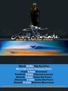 Rémi Bertoche, l’artiste des vagues surfeur de toiles, est de retour au shop vendredi 3 juin pour une session peinture et vente de créations. Tout au long de la journée, il produira et vous accueillera pour parler de sa passion mais aussi partager tout ce qui fait son quotidien de sportif voyageur. Vous pourrez également passer commande auprès de lui aussi bien pour des oeuvres classiques que des fresques murales à domicile. Pour ceux qui ne connaissent pas encore le peintre, vous pouvez déjà avoir un aperçu de ses activités multiples sur son site web.