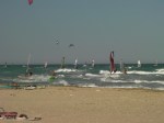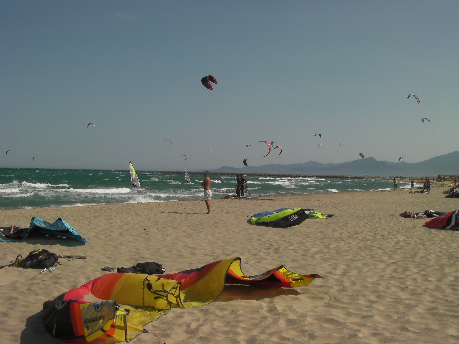 4,7 m² en windsurf, 7 m² bon plein pour les kites, 20 à 30 nds Est/Sud-Est, soleil, eau tiède…c’était la recette idéale pour attirer près de 60 planchistes et environ 90 kiters ce lundi sur le spot de Canet. Beaucoup de monde à l’eau donc et pas mal de vent marin qui n’aura pas manqué à l’appel comme ce fut le cas hier. Toujours aussi ciblé, le flux aura principalement tenu ses promesses sur les P.O. en allant toutefois plus franchement que la semaine dernière jusque vers Barcarès où un bon 25 nds a également soufflé.