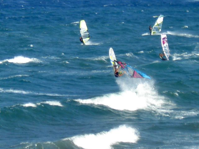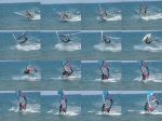 Dimanche aura été venté, venté et…venté. 40/45 nds, de gros nuages qui te collent des rafales en plus que t’en peux plus, bref, il y avait de quoi se faire mal et se faire du bien (cherchez pas, c’est compatible). Franck s’en est donc mis plein les bras au milieu des fidèles guerriers de la Franqui. El Pedro n’était pas loin et s’est également bien battu face aux éléments. D’autres ont eu semble-t-il moins de chance puisque Franck fait état d’un rider qui se serait cassé la jambe (bon rétablissement à lui), un autre a déchiré sa voile tandis que Pierro (encore lui) s’est lâchement fait abandonner par son wish au mauvais moment et s’en est mis une bonne. C’était la guerre, je vous dis!