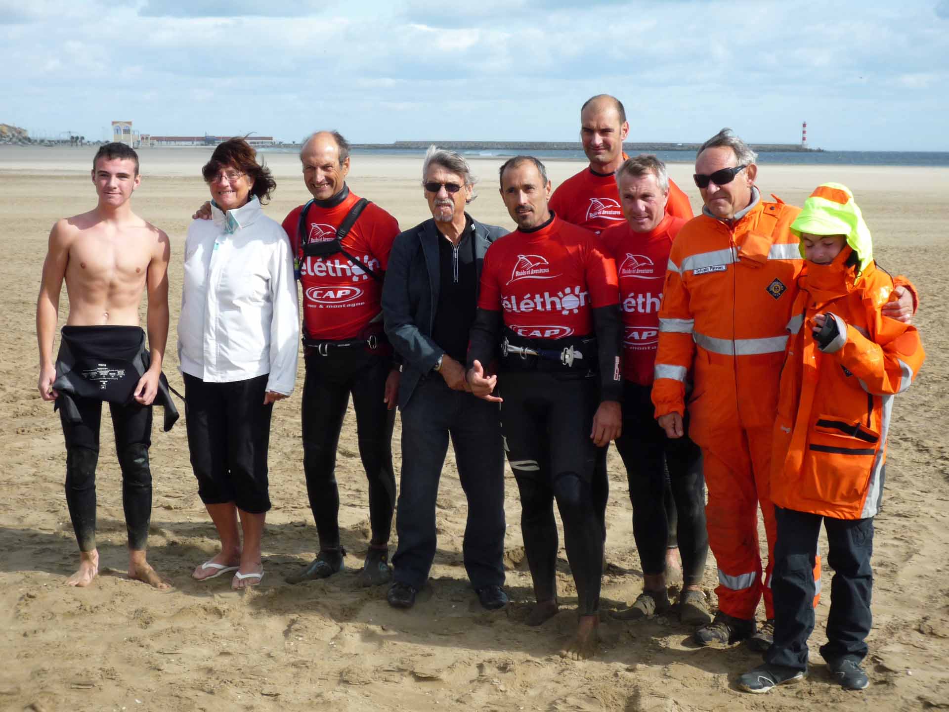 « Le 8 octobre 2011, pour la 7ème année, nous avons organisé à Port La Nouvelle un challenge en planche à voile pour le Téléthon au profit de la Recherche sur les myopathies. Cette année, le vent était au rendez-vous. Nous avons bénéficié d’une belle journée ensoleillée avec un vent généreux et soutenu dont les pointes à certains moments ont atteint les 60 nœuds (110 km/h).Tout au long de la journée bon nombre de participants se sont lancés pour le challenge kilométrique du Téléthon. Les locaux habitués à ce spot ont bien monté le compteur avec technique et efficacité. Ce ne fut pas facile, quelques bosses, un peu de casse mais tout le monde était content d’avoir apporté sa contribution physique. Un grand merci à la SNSM qui veillait et a secouru quelques participants en détresse et au Club Nautique de Sigean pour le zodiac. Nous avons eu les encouragements de la Mairie de Port la Nouvelle avec la présence de Monsieur Patrice MENARD, Maire adjoint. Résultat : nous avons parcouru une distance totale de 188 km. Nous aurons bientôt la somme récoltée dès que les promesses de dons seront toutes versées. »