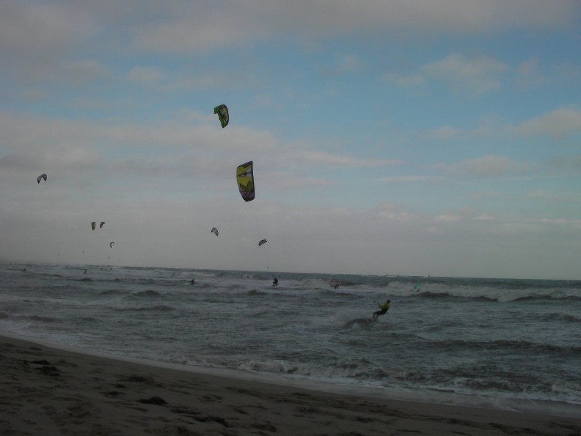 Après quelques jours de repos, sauf pour les adeptes du surf et du SUP qui se sont régalés, le marin a fait son retour sur les spots avec un samedi bien ventilé à 20/25 nds. Avec un week-end de 3 jours, beaucoup ont fait le déplacement sur la côte et on se serait cru au mois de septembre tant les ailes et les voiles étaient nombreuses sur le spot de la Franqui. Mois de septembre également du côté des températurespuisque beaucoup de riders étaient en combi demi-saison manches ou jambes courtes sans aucun souci tant les conditions restent douces et agréables. Un petit rayon de soleil de temps en temps, de belles séries de vagues, parfait pour avoir la banane en 7/9 m² pour le kite et 5,3m² en windsurf. Garçon, une autre.