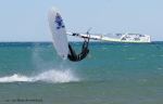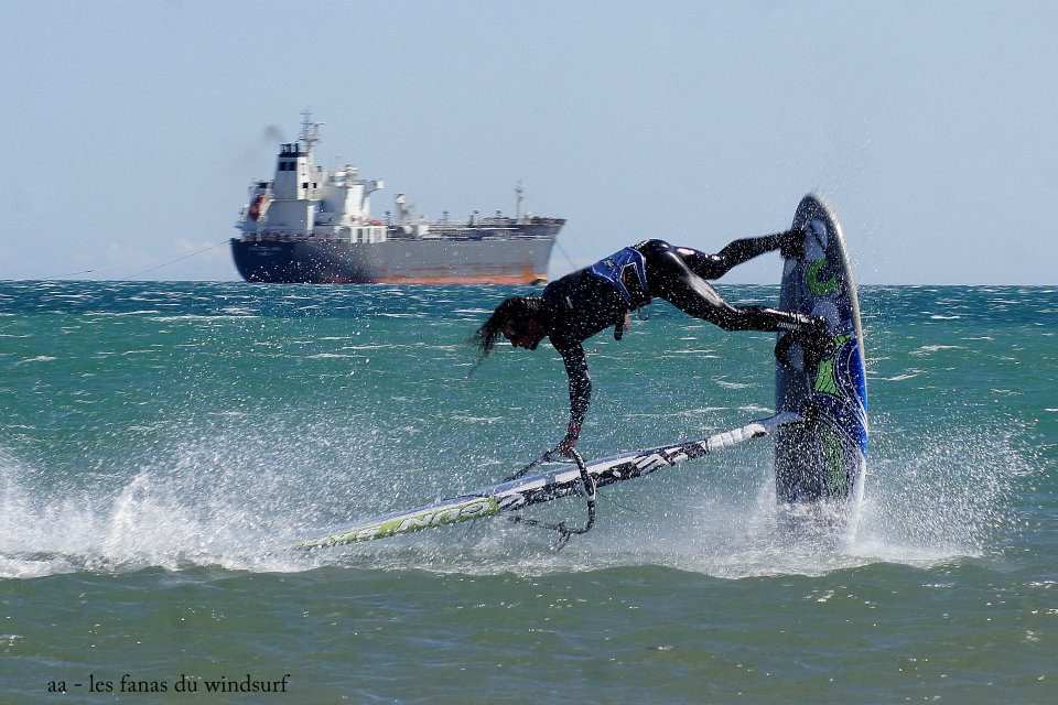 Grosse session pour Nicolas Akgazciyan ce lundi puisque le freestyler a mis le turbo entre les bateaux de Port la Nouvelle sous les yeux d’Annie et André Fouarge du blog des fanas du windsurf. Rien moins que 6 h d’entraînement avec une sortie vers 18h malgré les températures un peu fraîches heureusement compensées par un grand soleil. Nico utilisait sa Starboard Flare 101 Wood Carbon et s’appuyait sur une Gunsails Blow 2012, la nouvelle 4 lattes compacte de la voilerie allemande. Fort jolie.