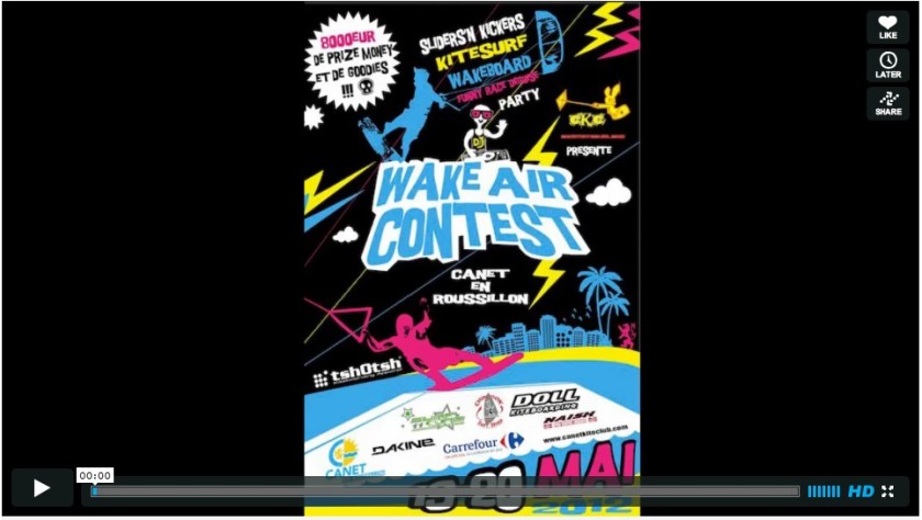 Chinook Leucate est partenaire de la première édition du Wake’Air Contest qui se déroulera les 19 et 20 mai 2012. La compétition mise en place par Thibaut Razaire s’intègre dans la fête du nautisme de la commune de Canet en Roussillon où l’on retrouve les vieux gréements, les puces nautiques, un sailing cross et une étape de la coupe de la ligue de Stand Up Paddle. Le concept du Wake’Air Contest est d’associer kitesurf et wakeboard autour d’une même identité de la glisse avec deux contests. Un contest « pro » où seront associés un kiter ayant une notation freestyle et un wakeboarder ayant une notation sur parcours à modules pour un classement par équipe au final. Un second contest « amateur » sera sous forme de race où les riders devront être déguisés avec classement + récompenses aux meilleurs déguisements.