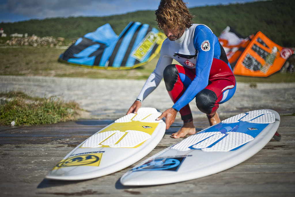 Si la gamme des surfs kite RRD vous a déjà conquis, si vous en voulez encore plus, Roberto a sorti en 2013 une nouvelle bombe de ses ateliers: la gamme K-Pro. 6 modèles issus de la gamme surf RRD, apportant 6 approches et 6 styles complémentaires, adaptés dans leur structure pour vous suivre dans vos sessions et encaisser les contraintes spécifiques du kite. Construction PU/polyester light d’un vrai surf avec placage bambou teinté sur le pont + pads et boitiers future finboxes renforcés PVC haute densité, tous les ingrédients pour obtenir des sensations que seul un surfer peut avoir sous les pieds. Avec un kilo de moins que la gamme surf kite (mesuré), le choix du shop a été rapide ! Vous trouverez en rayon le modèle Maquina K-pro pour charger du lourd et la Rubacuori K-pro pour lacérer la moindre petite houle. Olivier, responsable kitesurf, peut vous en parler, il est adepte depuis plusieurs mois.