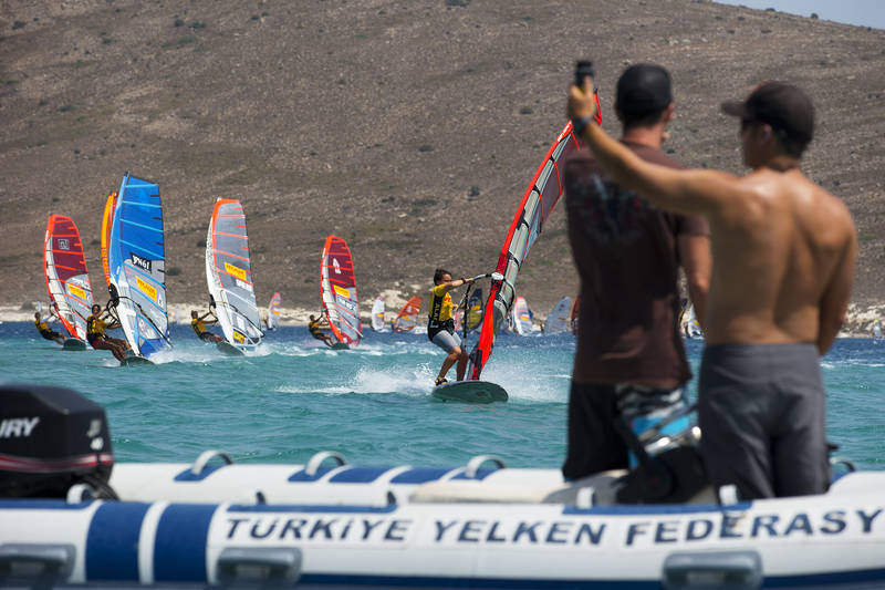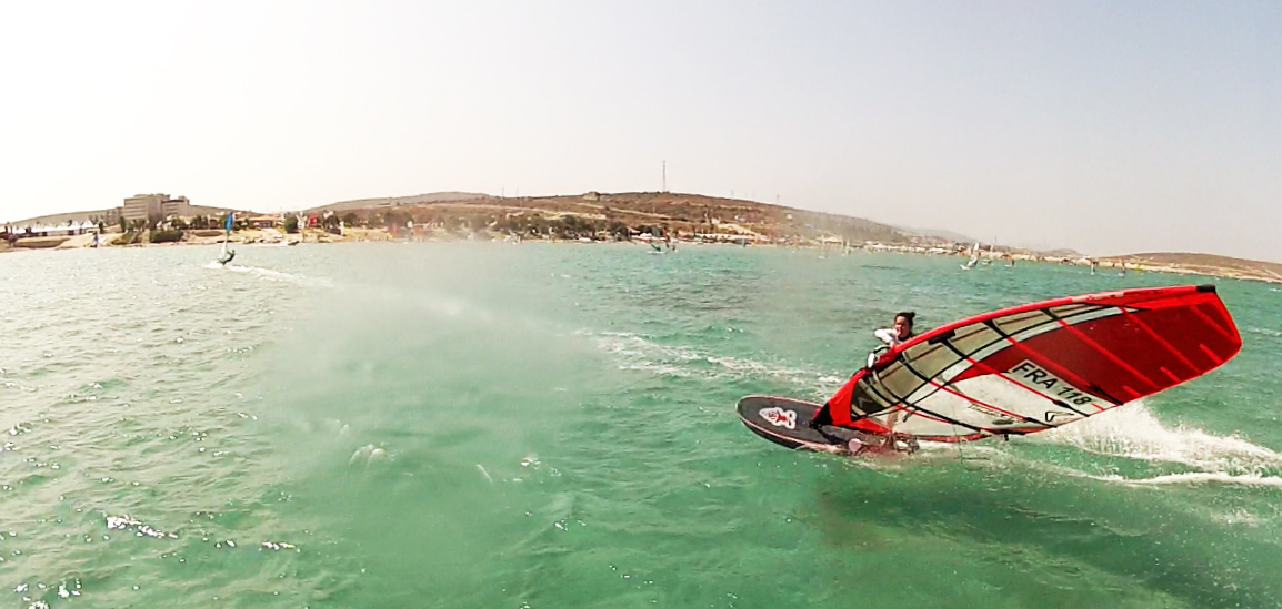 je reviens tout juste d’ Alaçati, à l’ouest de la Turquie où se déroulait la seconde et dernière étape de Coupe du Monde de slalom de la saison. La compétition s’est déroulée sur 5 courses dans du vent très irrégulier entre 8 et 16 nœuds, conditions inhabituelles en Turquie où le vent est normalement plus soutenu et régulier. Lors de la première manche, je fais un PMS (départ prématuré) en finale gagnante. Toutes les favorites sur l’épreuve ont fait la même erreur. Autant dire que la tension allait être présente toute la semaine étant donnée que cette étape Turque était la dernière de la saison. Par la suite, je réalise 2 autres finales gagnantes en finissant à la place de 7ième, résultat plutôt moyen mais j’ai quand même réussi à » sauver les meubles » dans des conditions que je n’apprécie pas particulièrement. Les deux dernières manches ont été catastrophique pour ma part. Une première où je ne me qualifie pas au premier tour. En tête toute la qualification, je m’arrête totalement sur l’avant dernier jibe, et les filles me précédant ont pris l’avantage d’une risée arrivant derrière. Je prend donc une manche de dernière. Avec une seule discarde, je n’avais pas le droit à d’autre erreurs. Sur la dernière manche, je rate la qualification d’une place en finale gagnante à cause d’un vent encore ultra irrégulier… A l’issue de ces 5 manches, je termine donc à la 14ième place. Ce résultat me déçoit énormément surtout sur une étape comme la Turquie où habituellement je me bats pour des places dans les 5 premières. J’ai réalisé toutes mes courses en 7.8 Severne Reflex 4 et Starboard i Sonic 110.