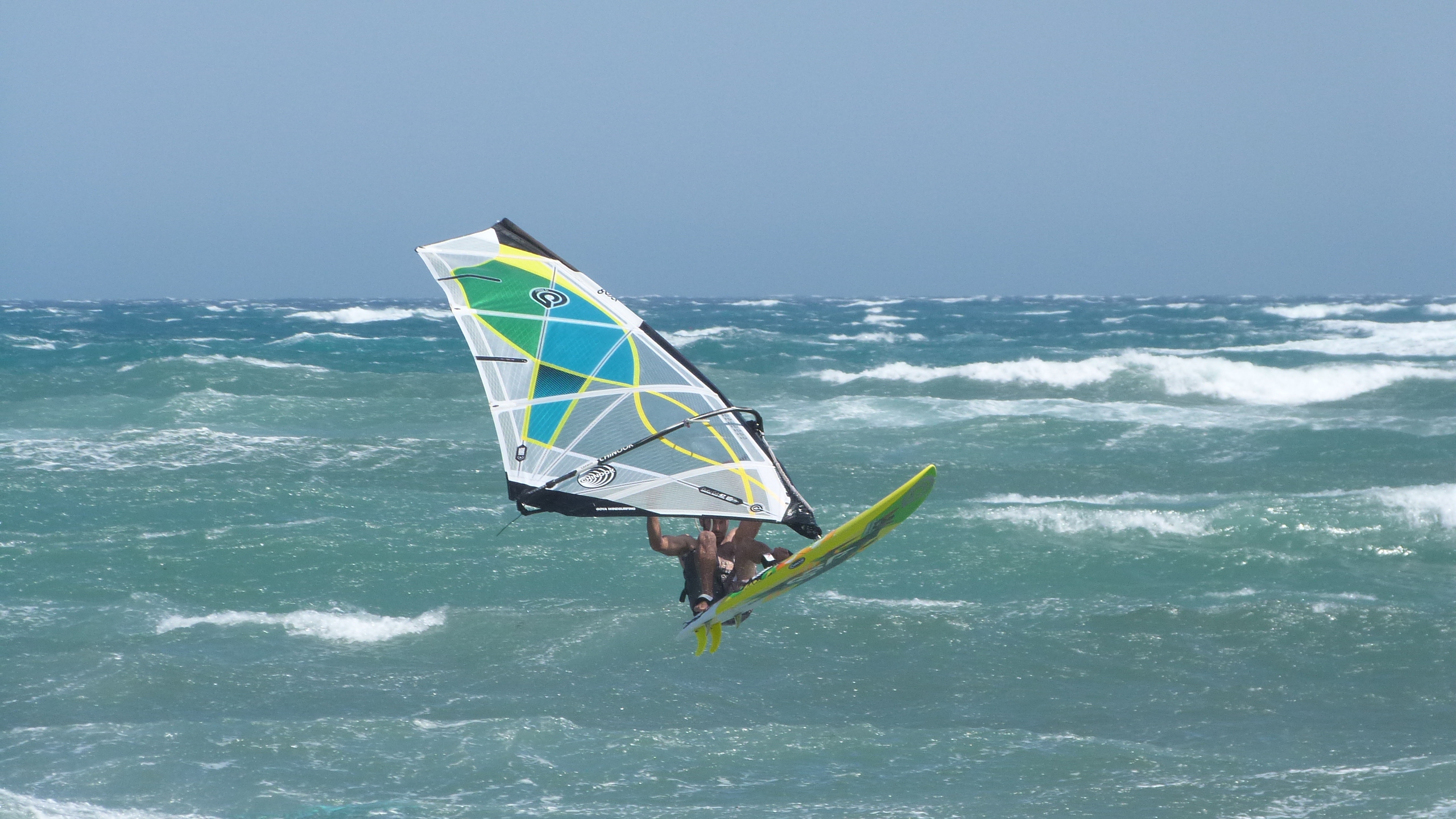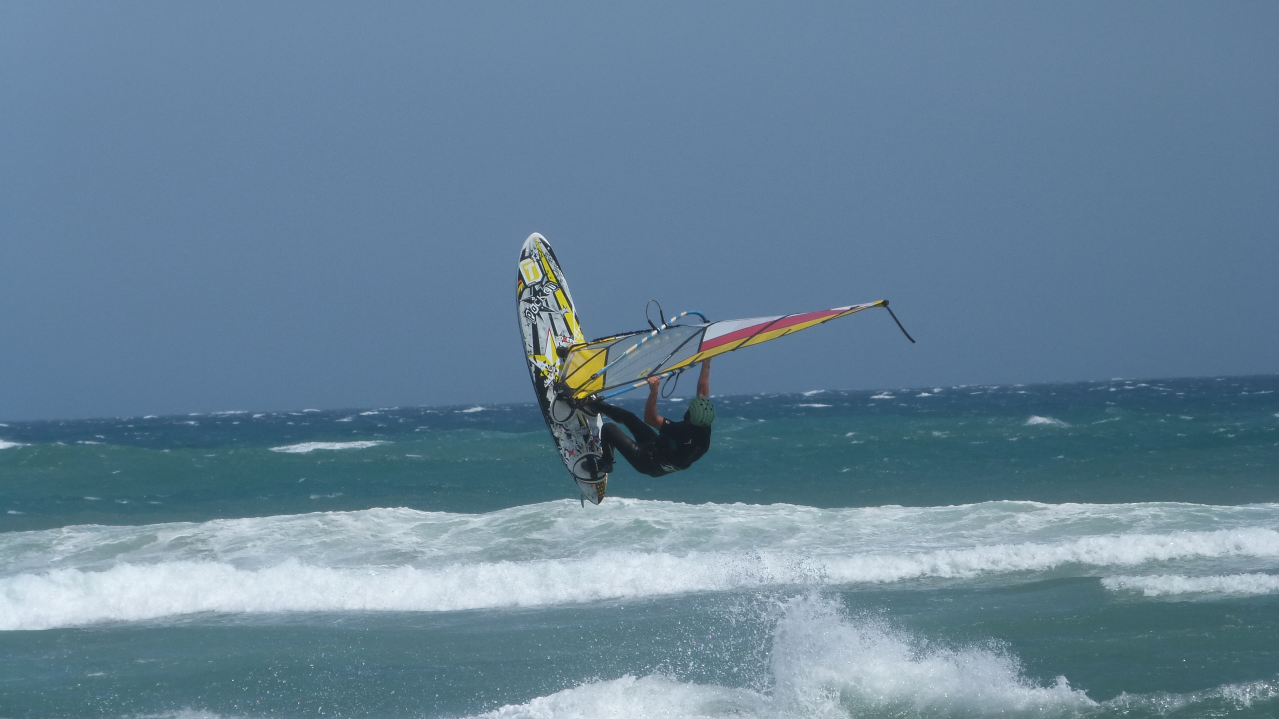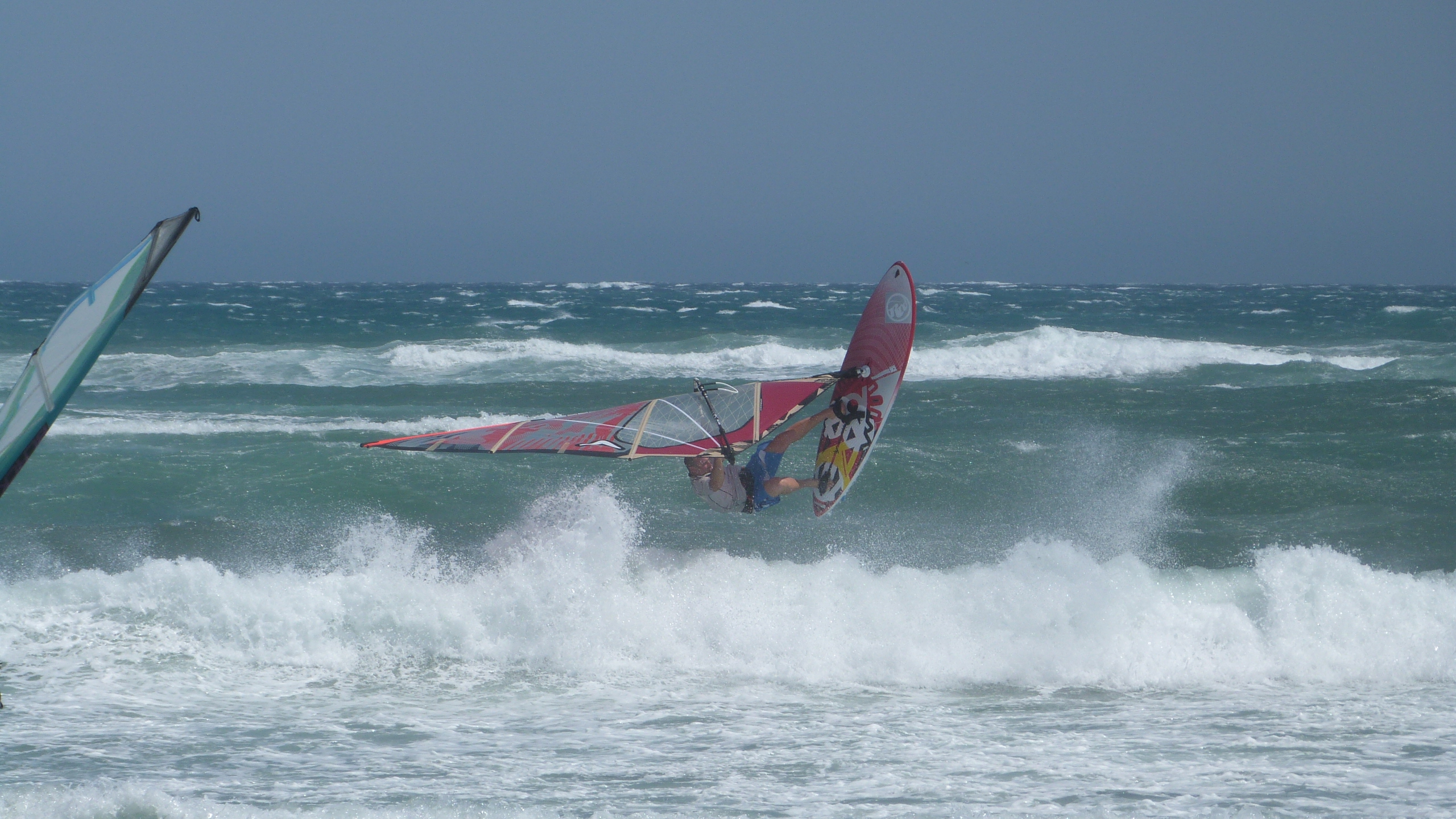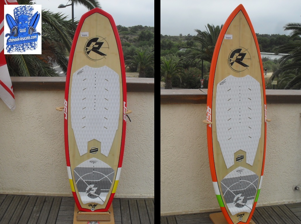 A ma gauche, la RSC Play, 5’2 par 18 shapée pour coller à la nouvelle tendance freestyle wave new school les pieds à l’air. Très compacte avec un nose tronqué, c’est une planche qui vous permettra d’enchainer des tricks facilement et radicalement en strapless. Malgré sa petite taille, elle conserve suffisamment de volume grâce à un nez et un tail bien large et une surface importante qui vous plaquera la planche aux pieds pour les phases aériennes. Son rocker assez rendu associé à un double concave assure vitesse, confort et turns radicaux dans les petites vagues. Rapide, confortable, pivotante, c’est un jouet très performant pour tout type de plan d’eau.