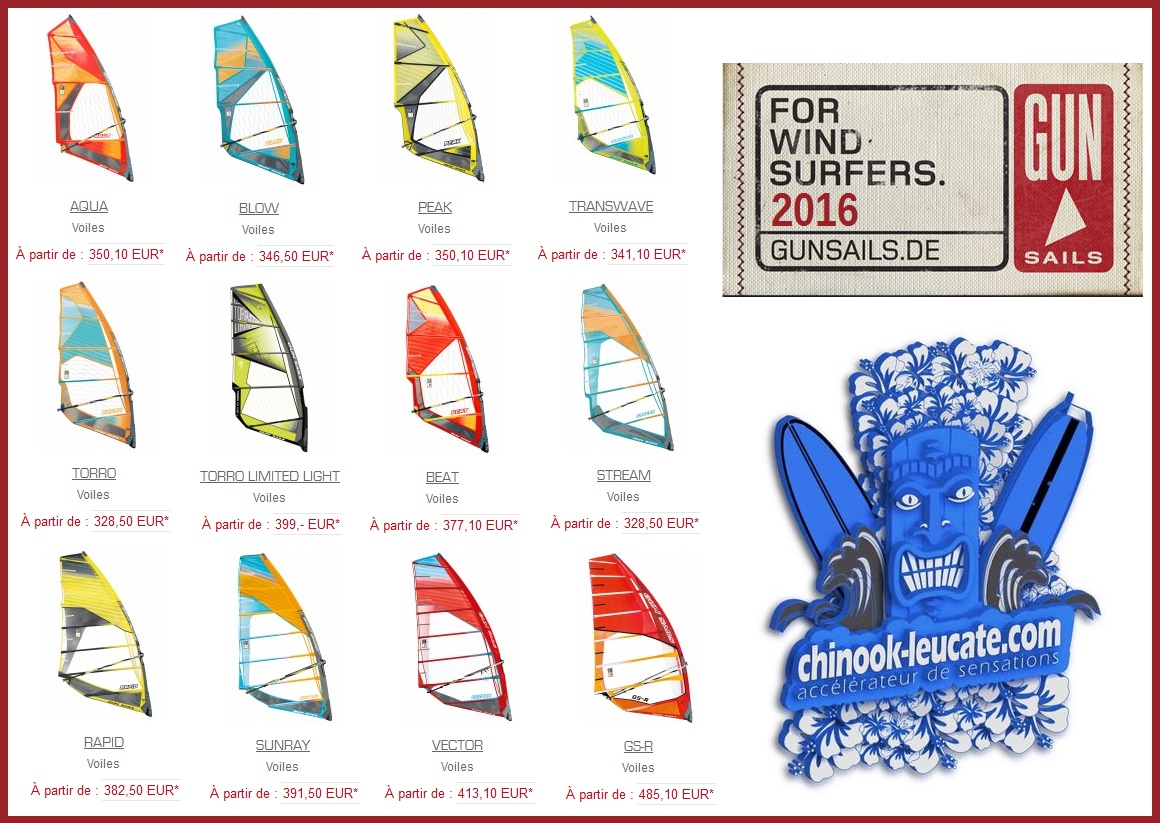 Fidèle à sa politique de respect du calendrier, c’est comme d’habitude en toute fin d’année que la marque Gun sails présente les nouveautés qui vont mettre le feu à vos sessions durant l’année à venir, encore et toujours pour un budget très raisonnable. La marque allemande présentent 12 voiles, rien que ça, de la Aqua wave 3 lattes à la bombe GS-R qui n’a plus rien à prouver dans le rapport qualité/performance/prix. Quand vous aurez regardé de près les produits, vous constaterez qu’en 2016, les Gun seront plus que jamais dans la course avec une offre qui fait réfléchir. Mais là où la nouvelle collection finit de vous poser, c’est dans son offre de réservation avant livraison qui correspond à 10% de remise pour toute commande avant le 31 décembre 2015 (livraison courant janvier) à effectuer au shop et sur chinook-leucate.com. Pour vous mettre l’eau à la bouche, rien de mieux que la vidéo du shooting 2016 avec un aperçu des modèles flat/freeride sans oublier l’intégralité de la collection en détails et en photos dans l’album dédié de la page Facebook Chinook Leucate. Belle offre pour un cadeau de Noël… 😉