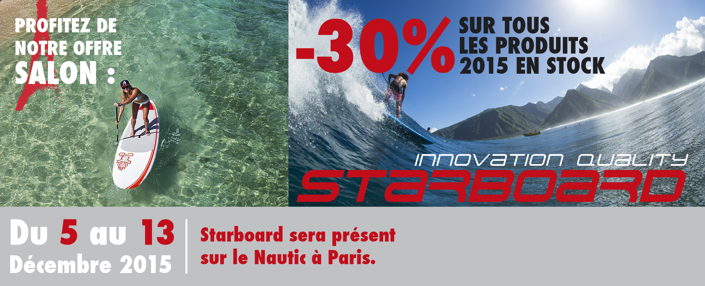 – Phase 2: au même moment, au salon Nautic, le stand Airush/Starboard SUP vous propose également les mêmes conditions sur le matériel 2015 à commander sur place mais en plus, le team qui vous accueillera au salon vous réserve une remise exclusive uniquement sur place de 15% sur les produits Airush 2016 (oui oui, 2016!). A noter qu’en vous présentant en tant que client Chinook, vous bénéficierez de la relation partenaires dans le suivi colis et livraison directe made in Leucate. Diablement intéressant, non?