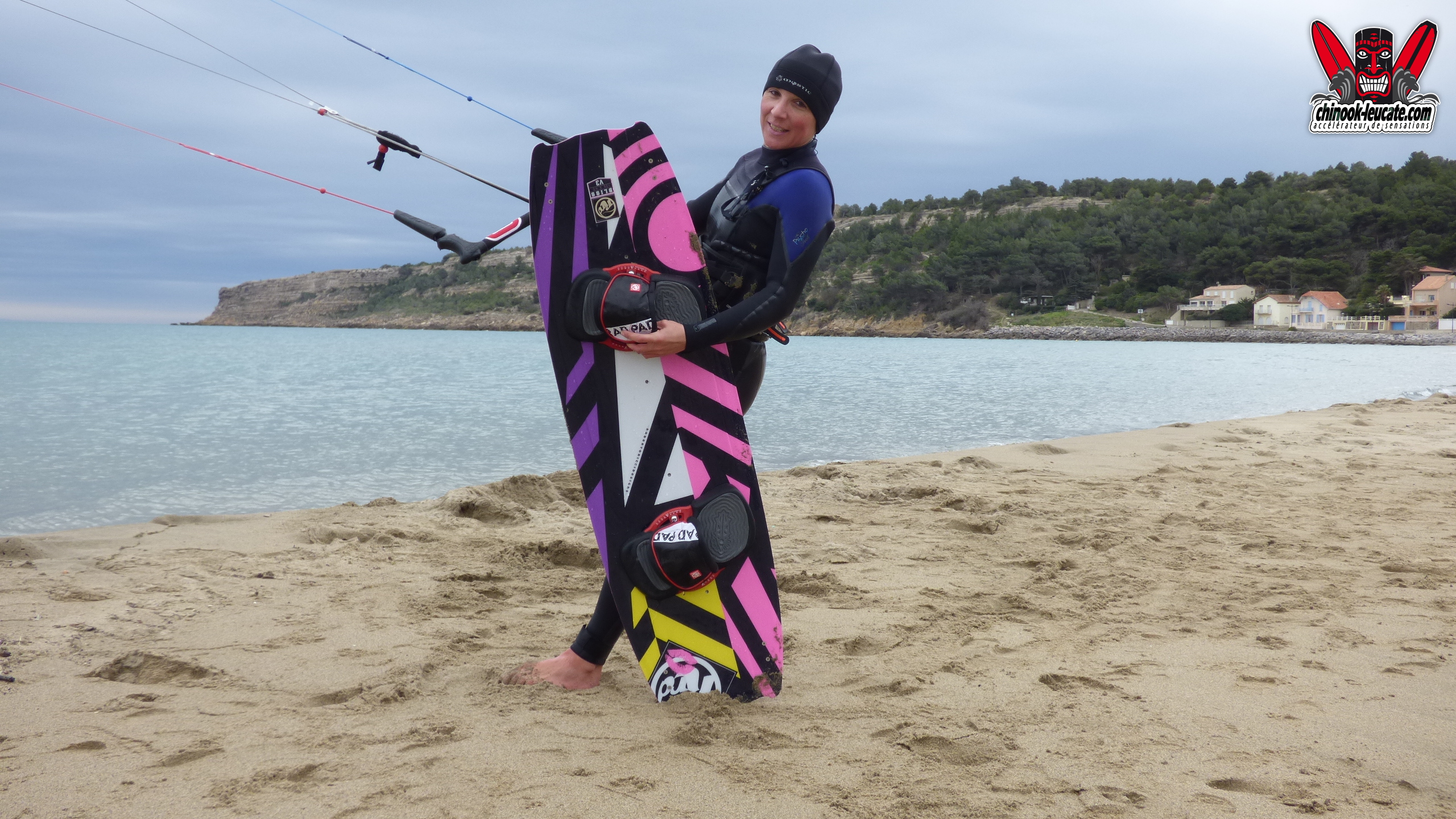 Malgré un dimanche de Pâques bien maussade, la petite tramontane qui persistait à la sortie du shop ce dimanche midi était suffisante pour une session test de la toute nouvelle RRD Bliss 2016 par Ludivine. Déclinée également en version girl pour les 2 plus petites tailles (Kiss « pink style » 39/40), la nouvelle board freeride/freestyle est adoptée pour la saison par la fille du rayon kite. Flex medium bien contrôlé et carène travaillée sur un noyau Pawlonia + strat verre triaxiale, la Bliss est prévisible et sécurisante aussi bien dans les trajectoires que dans les manœuvres. Le pop conséquent et les réceptions saines renforcent ses bonnes dispositions en freestyle pour en faire une board qui est du coup un produit Chinook, disponible en test, en stock au magasin et sur chinook-leucate.com.