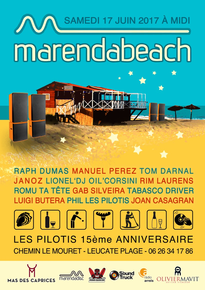 La bonne nouvelle du jour, c’est qu’après les tests Mondial du vent, la tournée Airush, les essais Starboard / Severne, les partenariats AFF windsurf slalom La Franqui et Engie kite tour du week-end dernier, c’est un nouvelle évènement qui occupera ce week-end l’activité du shop. Place cette fois à la musique avec le Marendabeach qui est depuis quelques années un rendez-vous immanquable offert par Marendadisc, label discographique et collectif artistique nord-catalan établi depuis le début du siècle. Autour d’un programme musical de qualité très élevée, cet évènement annuel a pour vocation de réunir des individus, des amis, des familles, de tout âge et de tous horizons, sans critère de classe, d’origine, de condition ou d’opinion. Le temps d’une longue journée au temps qui passe toujours trop vite, chacun peut faire l’expérience de nombreux plaisirs et de partages chaleureux autour d’activités diverses, dans un environnement sonore et visuel des plus agréables.