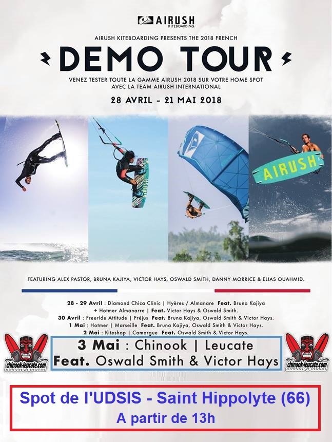 La bonne nouvelle de ce jeudi, c’est que le Airush Demo Tour 2018 arrive bien à Leucate aujourd’hui! Rendez-vous donc à partir de 13h sur le spot de l’UDSIS – Saint Hippolyte (66 – étang de Barcarès) pour tester le nouveau matériel et se faire une grosse session dans une tram’… musclée. Place ensuite à l’apéro au shop à partir de 18h, histoire de débriefer tranquillement. On vous attend! 🙂