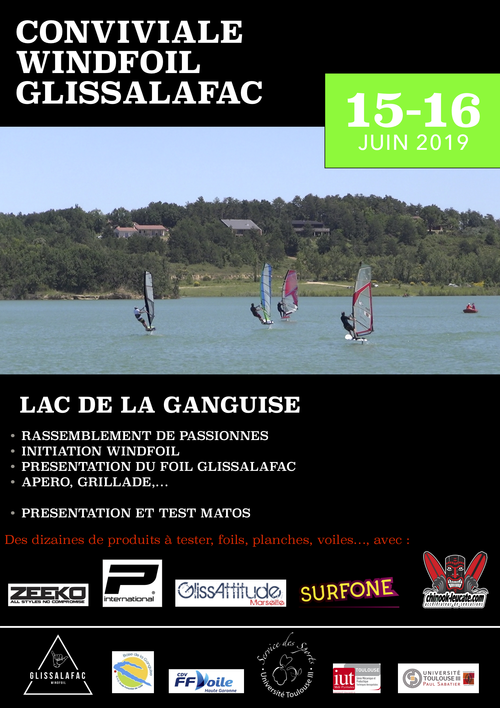 La Conviviale Windfoil Glissalafac de la Ganguise approche à grands pas et c’est l’heure des préparatifs pour Chinook! Le shop sera en effet sur place par l’intermédiaire de Dionis et Christophe qui se rendent au lac les bras chargés de matos test 2019! Seront du voyage les foils Loke Lk1, Starboard GT carbon, RRD WH Flight v2, Naish Thrust, Sroka Carbon, Slingshot Hoverglide Fwind1 et Alpinefoil. Pour les boards: Slingshot Wizard 125, Starboard 122, Naish Hover 122, RRD F Flight. Et pour les voiles: Loft Skyscape, Ezzy Hydra et Naish Lift. Rendez-vous donc sur le spot samedi et dimanche pour découvrir et essayer le dessus du panier de la crème de ce qui se fait de mieux en matière de pinch’à voile qui vole. On vous aura prévenu! 🙂