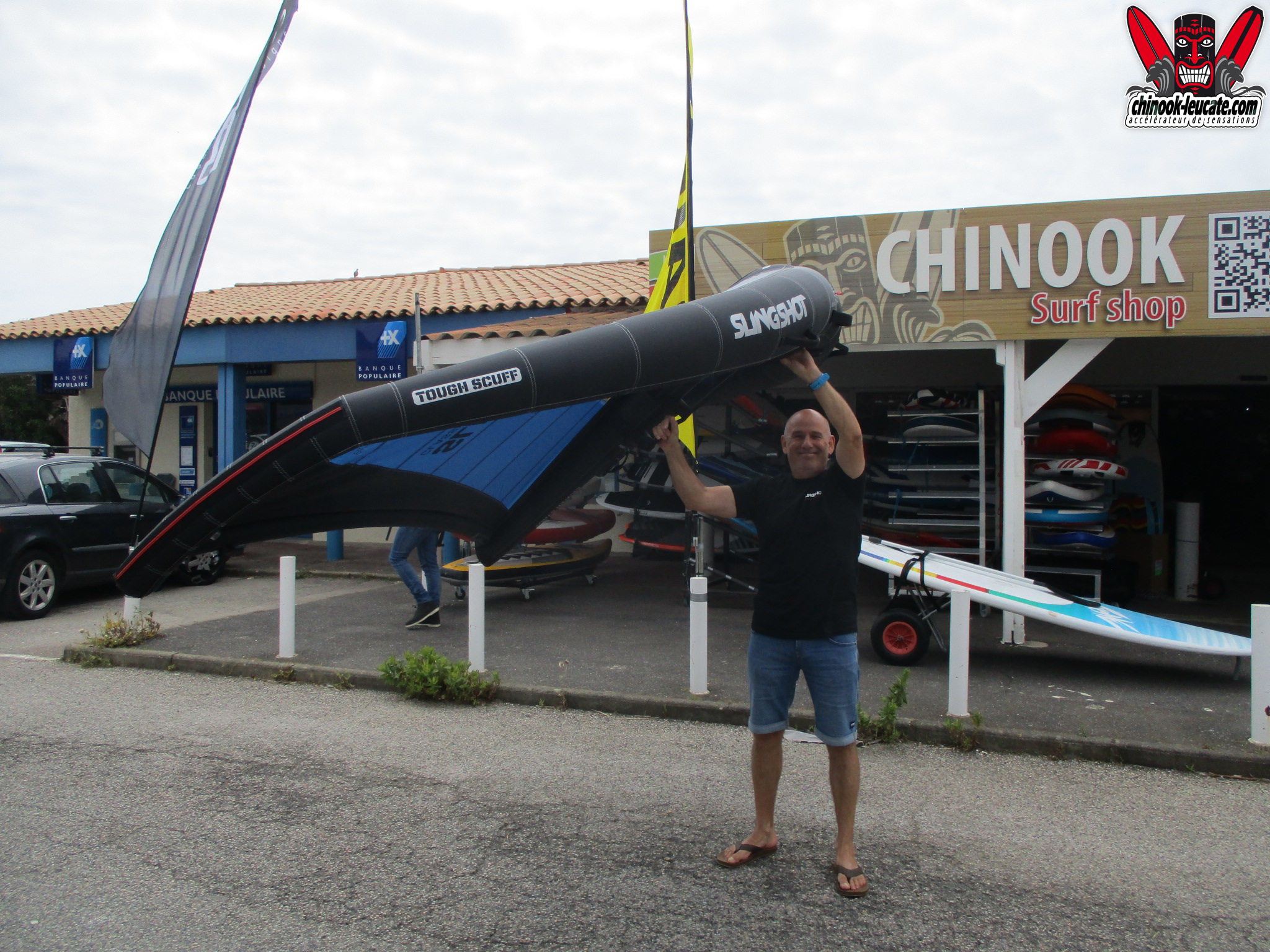 L’invité du week-end chez Chinook, c’était Michel Marchand alias Monsieur Slingshot France! T-shirt noir de rigueur pour notre Batman du jour puisque Michel est venu présenter à l’équipe la première Slingshot SlingWing 2020 arrivée des USA. 4,2m², gonflable sous tous les angles et extrêmement aboutie, la SW a bénéficié d’un développement considérable de la part du designer Tony Logosz qui a travaillé sur le sujet depuis 2011. Sup foil, snow kite, mountain board, air, eau, terre, la Wing est un jouet d’un nouveau genre qui va vous plaire! Disponible très prochainement, déjà en précommande au shop et sur chinook-leucate.com. 🙂