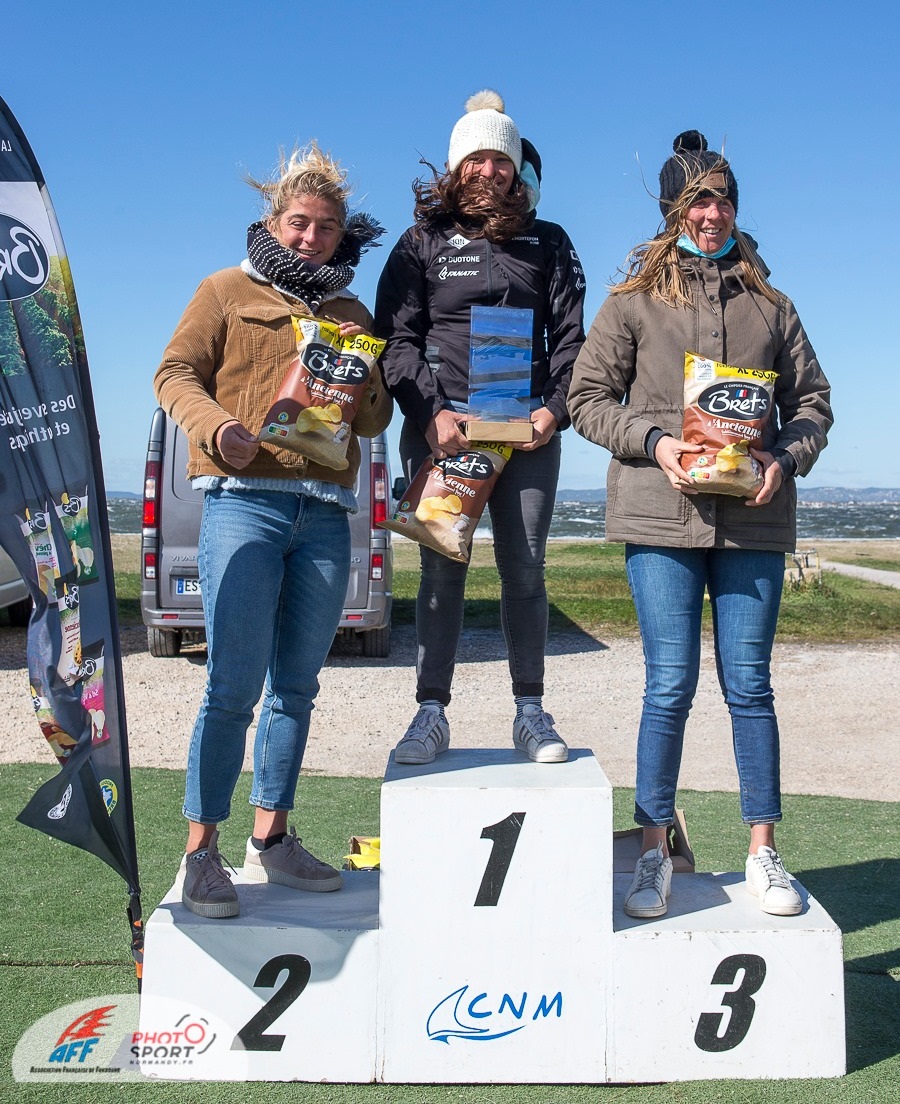 La news du dimanche, ce sont les très bonnes perfs de Marion Mortefon qui rentre avec le sourire de l’AFF Marignane après une bagarre d’anthologie contre à ses adversaires… et contre le vent! Le Mistral s’en effet énervé dimanche dernier, dernier jour de l’épreuve, avec des claques à 50 nds qui ont bousculé les riders en manque de petit matos. La sigeanaise a profité de ses habitudes dans la tram pour tirer le meilleur de son quiver Fanatic / Duotone en ridant finalement avec sa 3,7m² de vague! Victoire en dernière manche et gain de l’épreuve à la clé, voilà un mois d’octobre qui commence plutôt bien pour Marion. Rendez-vous pour la finale du 24 au 26 octobre à Leucate. A suivre ! 🙂