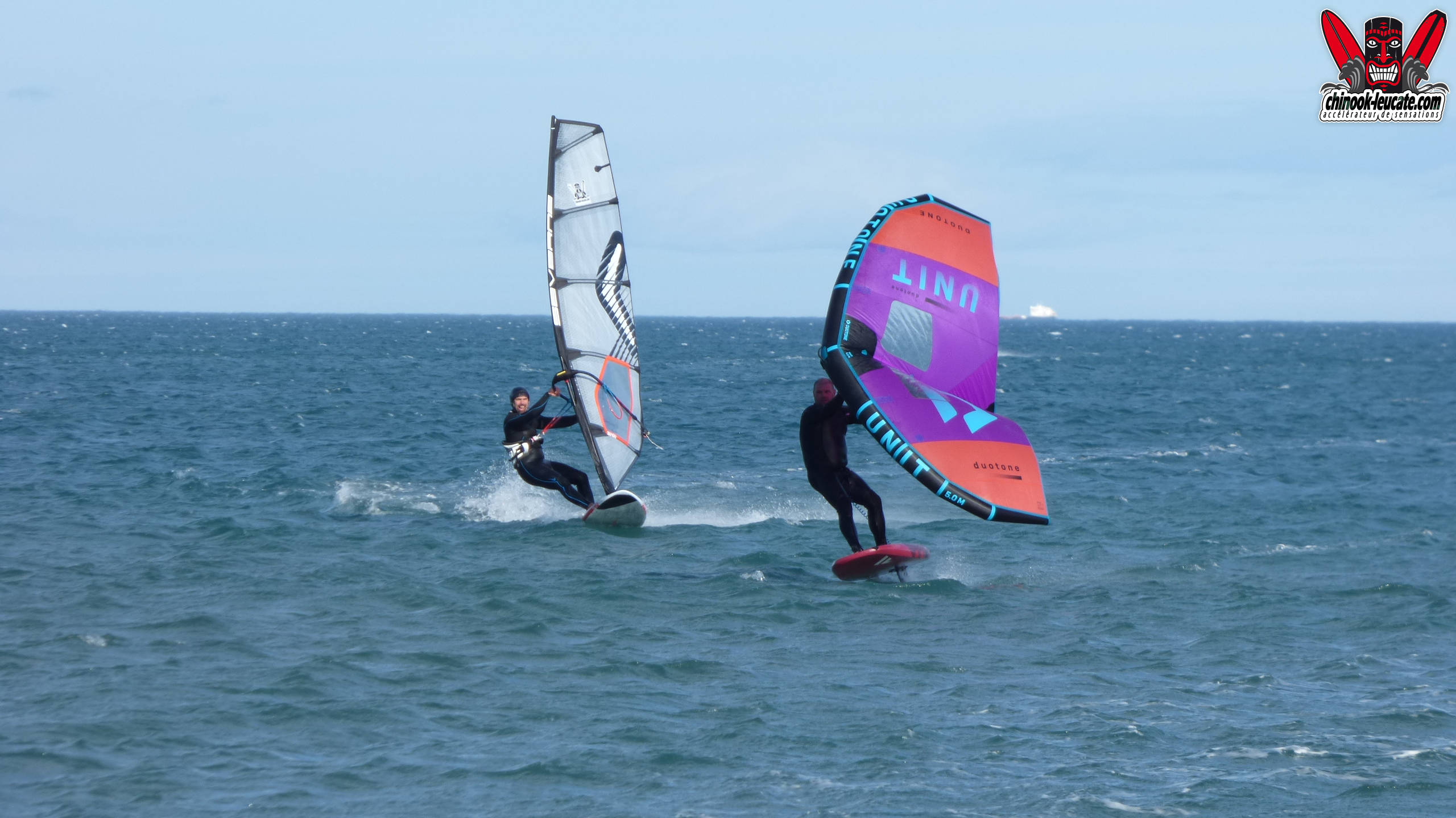 Ce sont pas les températures clémentes ou les passages nuageux finalement inoffensifs qui auront marqué ce dimanche mais plutôt le vent. Certes, la tramontane était prévue consistante mais de là à balayer les spots comme celui de la Franqui à près de 55 nds en début d’après-midi… Comment dire…. Toujours est-il qu’une poignée de solides ont gardé le cap quitte à souffrir « un peu » pour profiter de la brise et se faire malgré tout une session. Et dire que demain lundi, c’est prévu forcissant… 🙂