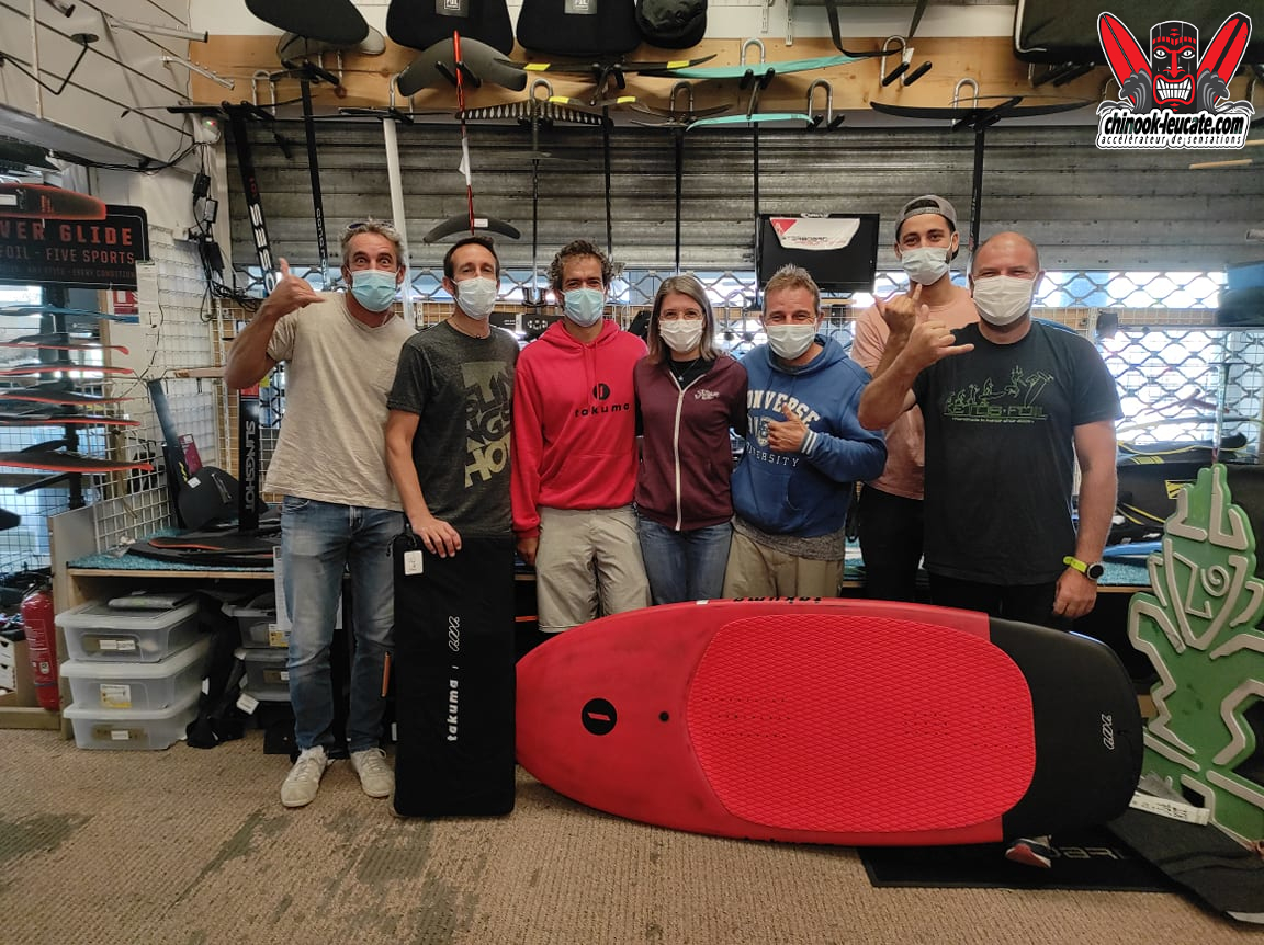 La visite du jour au shop, c’est celle du team Takuma foil avec Richard Boudia, en rouge, et Laurent Borgna, en bleu, venu faire le point sur les nouveautés à venir et discuter matos avec l’équipe du shop. Toujours un plaisir de les voir et de partager avec eux leur passion et leurs projets. Merci à eux ! 🙂