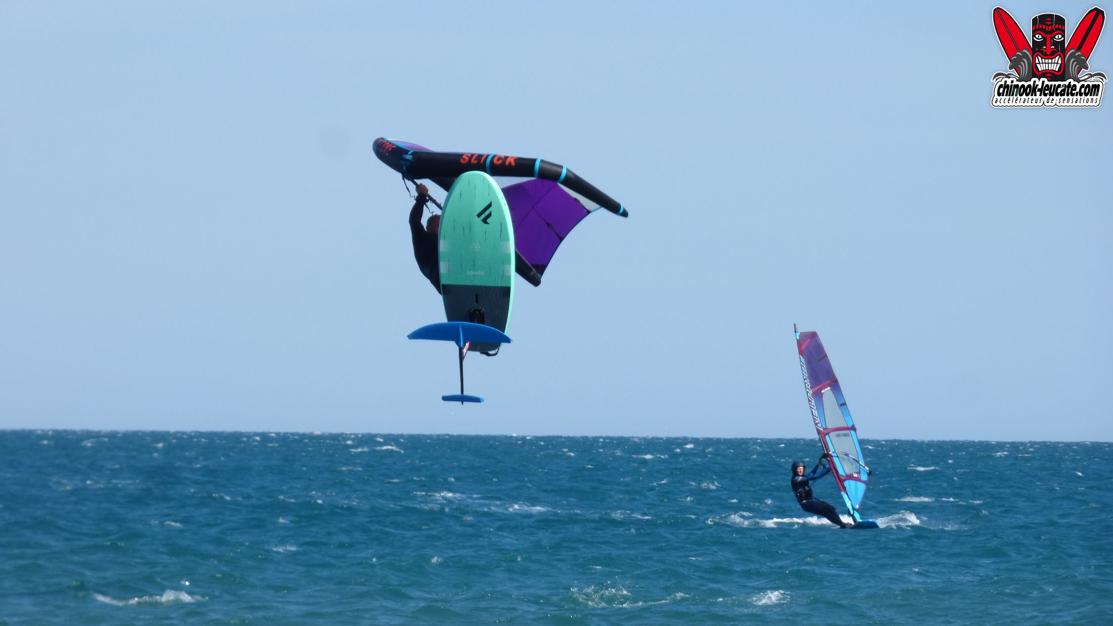 La session du jour, c’est celle de la mi-journée pour Rolan, Ludivine et JC. Rendez-vous avec la tramontane, 13h30 pétante, tout est ok. Windsurf, wingfoil, soleil, petite fraîcheur (merci le courant de Nord) et du gaz sur l’eau pour profiter du vent crescendo. Ça ouvre l’appétit, non? 🙂