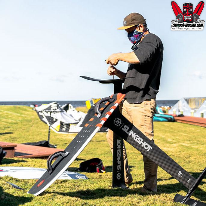 La grosse news matos au shop cette semaine, c’est l’arrivée de la nouvelle collection Slingshot Phantasm foils 2022…enfin…une partie. Parce qu’après plus de 5 saisons à donner le sourire aux amateurs de freeride, la gamme Slingshot Hover glide aluminium multi-supports reçoit en effet une armée de renforts…en carbone! Toujours aussi cross over, plus légers, durables, rigides, nerveux, ajustés et très bien pensés, les foils Phantasm c’est 12 mats carbone prépreg haut-module 12K et aluminium nouvelle génération, 3 fuselages, 2 stabs, 11 ailes (!) de 650 à 2300 cm² et une bagagerie complète fournie d’office. Amateurs de Windfoil, kitefoil, SUP, surf, wake, wing ou plusieurs à la fois, ne cherchez pas les problèmes, il n’y aura que des combinaisons et des solutions, y compris celle de pouvoir upgrader vos mats Hoverglide alu quelque soit leur âge sur les fuselages et ailes Phantasm grâce à un étonnant adapteur talon. Des jouets de dingue qui ont nécessité plus de 2 ans de développement et des centaines d’heures de mise au point, on vous promet que ça se sent dans les mains, sous les pieds et que c’est donc désormais à découvrir au shop et sur chinook-leucate.com. 🙂