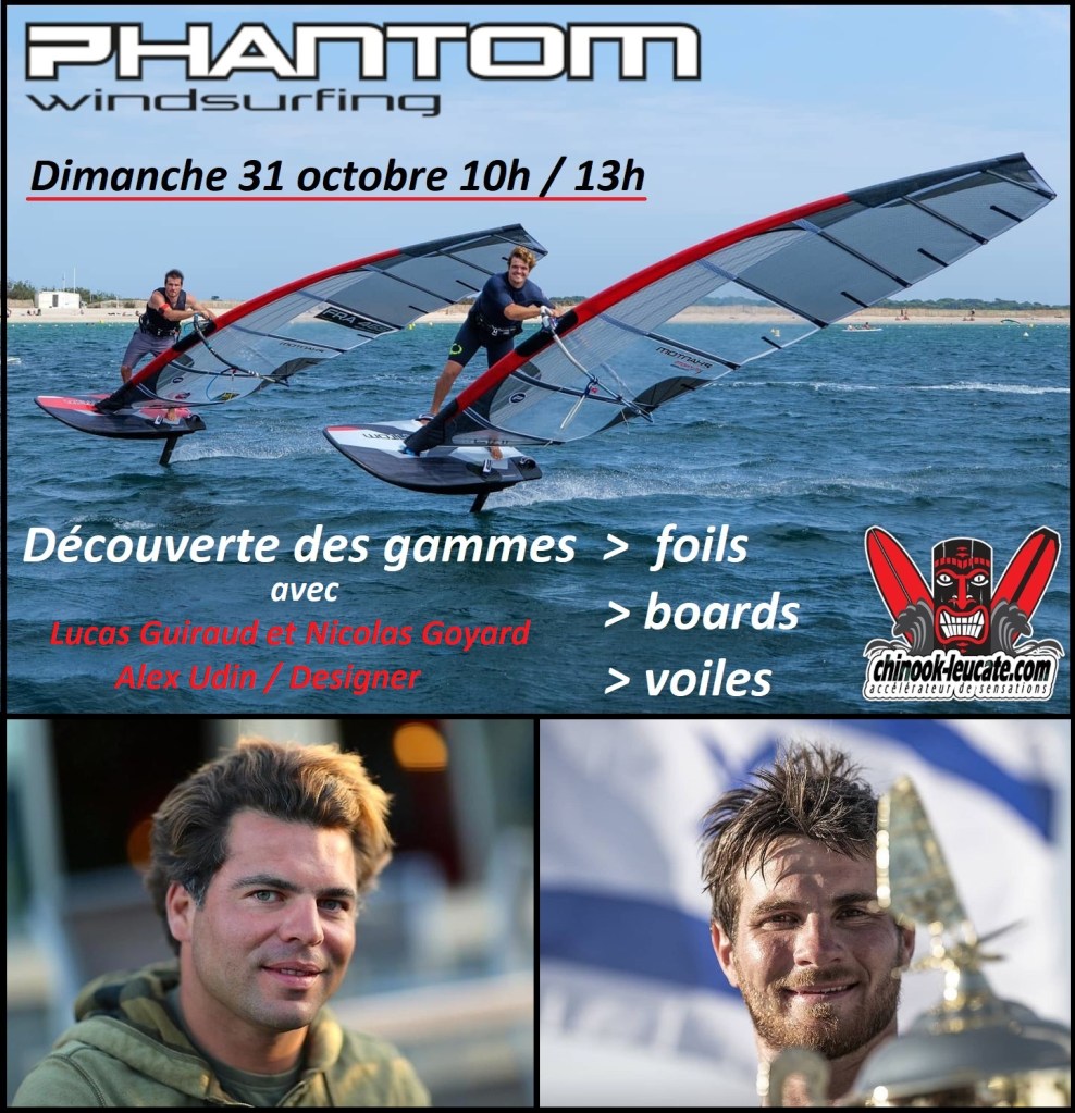 L’info du samedi soir, c’est que la matinée de ce dimanche dédiée à la découverte des gammes Phantom foils, boards et voiles en compagnie de Lucas Guiraud va finalement être considérablement enrichie par la présence de Nicolas Goyard, le prorider de la marque qui claquent de grosses perfs mondiales ces derniers mois. Cerise sur le bateau, Monsieur Alex Udin, designer et sorcier de Phantom, nous fait également l’honneur de venir au shop, histoire de partager sa passion et répondre à vos questions. Encore plus de bonnes raisons de venir… On vous attend avec café et croissants ! 🙂