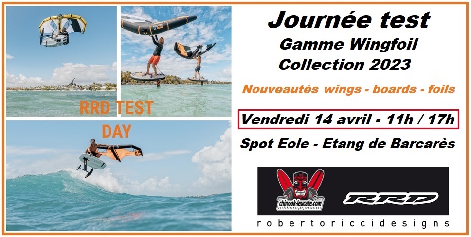 Encore une bonne nouvelle pour la journée de vendredi avec cette fois la gamme RRD wing 2023 dispo en test sur le spot d’Eole Barcarès. Chinook Leucate et RRD France vous invite donc ce 14 avril à découvrir les nouveautés wings, board et foils de la collection en cours. Une belle occasion de profiter du soleil et de la tramontane en essayant les nouveaux bébés de la marque italienne. On vous garde une place ? 🙂