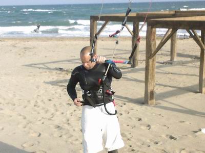 Quand un freestyler kite partage une session avec un freestyler windsurf, si l’esprit est le même, cela ne peut être que convivial. Benjamin, personnage talentueux et radical dans sa façon de naviguer, échange quelques mots avec son collègue Olivier qui ne manque que rarement une occasion de travailler ses figures en windsurf, que les conditions soient bonnes ou mauvaises. C’est peut-être avec une photo comme celle là que l’on peut résumer la motivation qui anime ceux qui écument les spots de la région par tous les temps et par tous les vents.