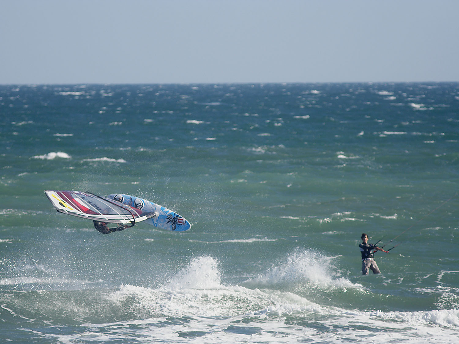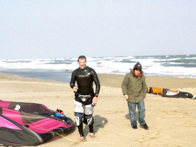 A noter la venue de 2 speeders patentés : Jérome « 12m2 ou rien » Bila qui n’a pas réussi à reprendre le record du monde aujourd’hui (foutu clapot, hein Jérome?) et Cyril Pimont qui commence à reprendre ses marques après une convalescence qui lui a ouvert l’appétit.
