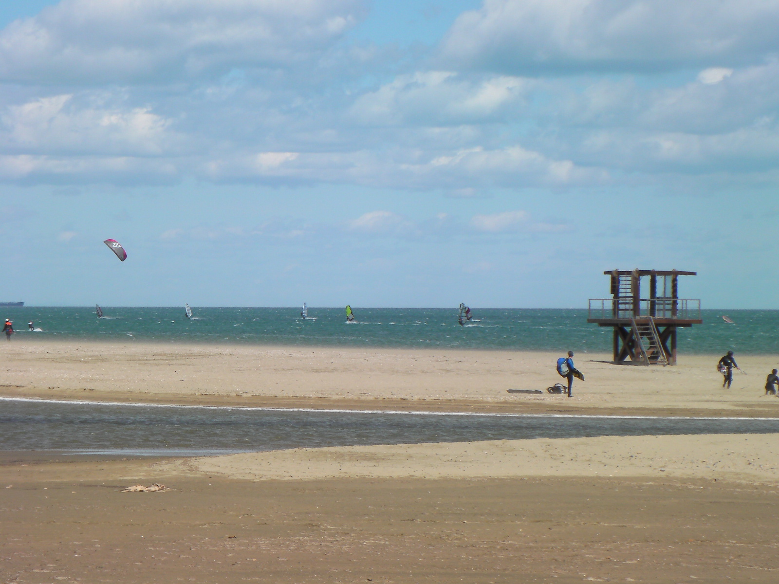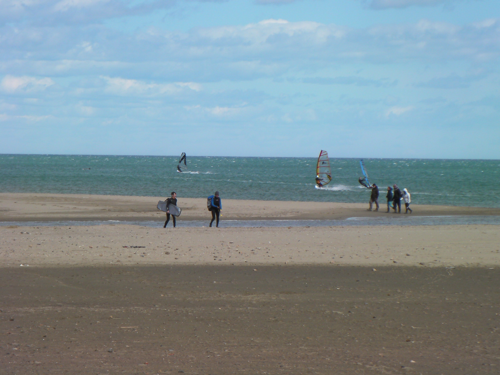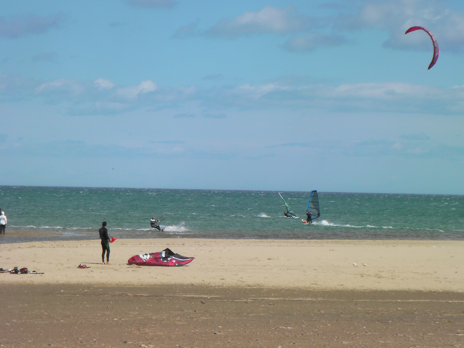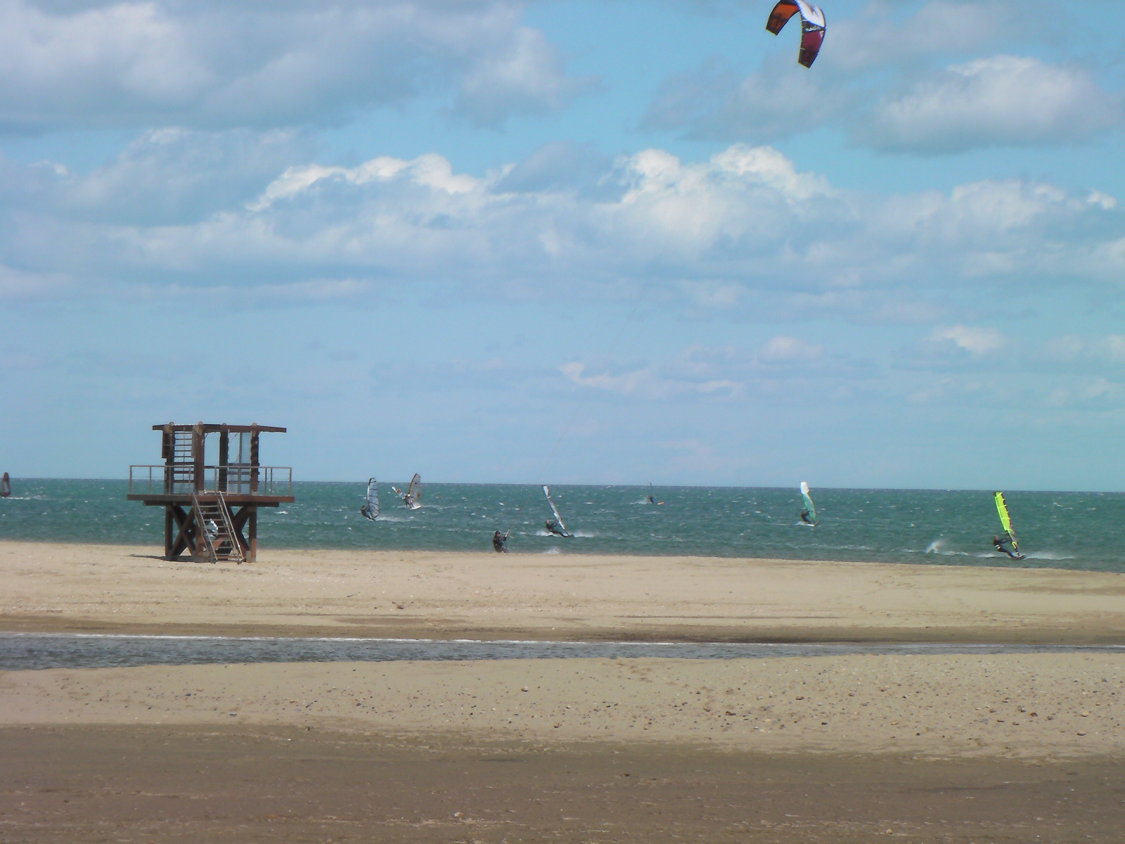 en ces temps de pétole je vous envoie quelques images de jeudi dernier. Alors qu’il y a un petit noeud de Nord-Est sur Leucate, le vent d’Est sud est se renforce sur Argelès. Pile à l’heure, le vent monte à 14 h et soufflera toute la journée en 5.8 m² et 85 litres. Le soleil se montrera rapidement …Nous étions donc deux à naviguer au niveau de Central Windsurf puis, un peux plus tard, Annie et André arriveront à l’entrée d’Argelès, alertés par la webcam 🙂 . Encore une « petite journée » qui dégourdit… Faudrait penser à passer aux choses sérieuses…