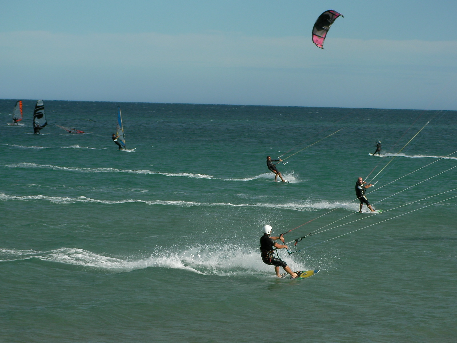 « Samedi, c’était une session très fréquentée avec beaucoup de monde sur le parking et sur l’eau, du vent irrégulier, de l’eau chaude et tout et tout. J’en ai profité pour tester une Starboard Quad et m’enlever quelques préjugés. Sympathique, la bête: ca décolle vite au planning , ça remonte au vent et ça jumpe bien. A tester dans du marin peut-être…