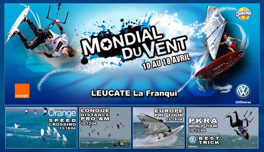 A l’image de l’année dernière, le salon nautique de Paris a été choisi par l’équipe organisatrice du Mondial du Vent de Leucate pour présenter l’édition 2010. Comme le confirme le site internet du MDV, le programme sera riche avec, dans l’ordre d’apparition, la longue distance kitesurf (open), l’Orange Speed Crossing (windsurf vs kitesurf), une étape du PKRA freestyle kite et une autre de l’Europe Tour de freestyle windsurf .