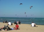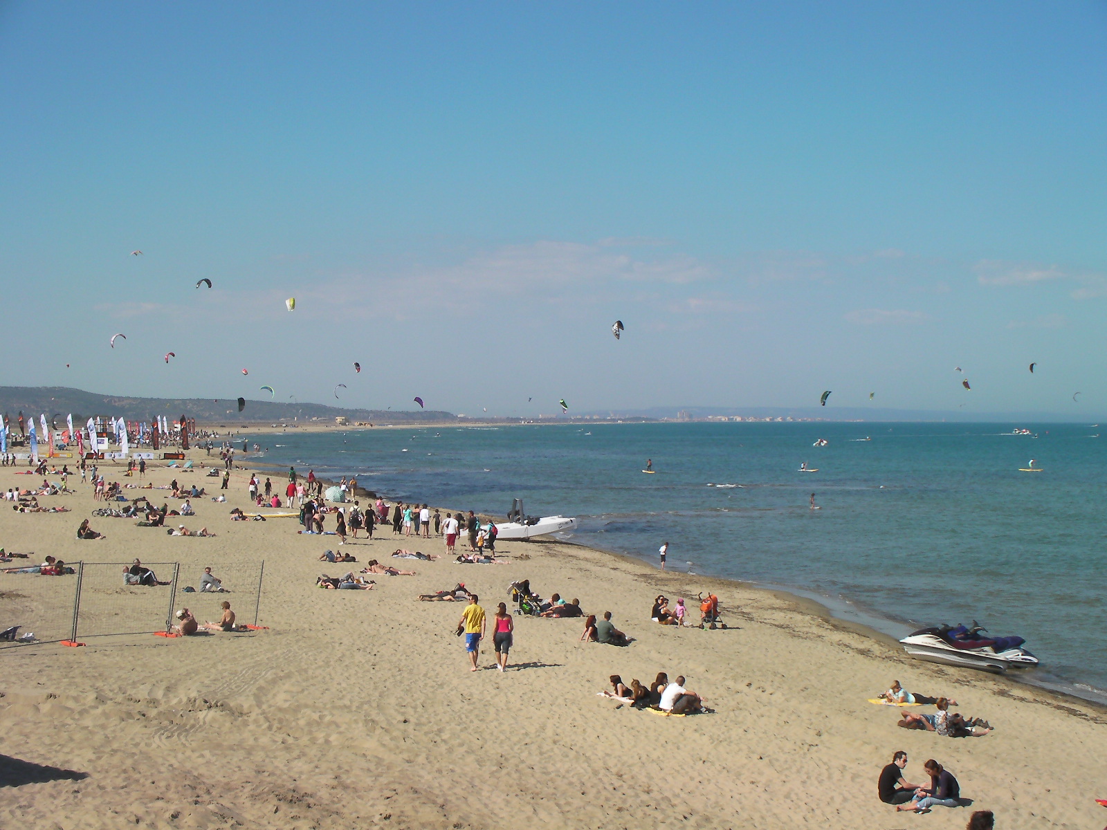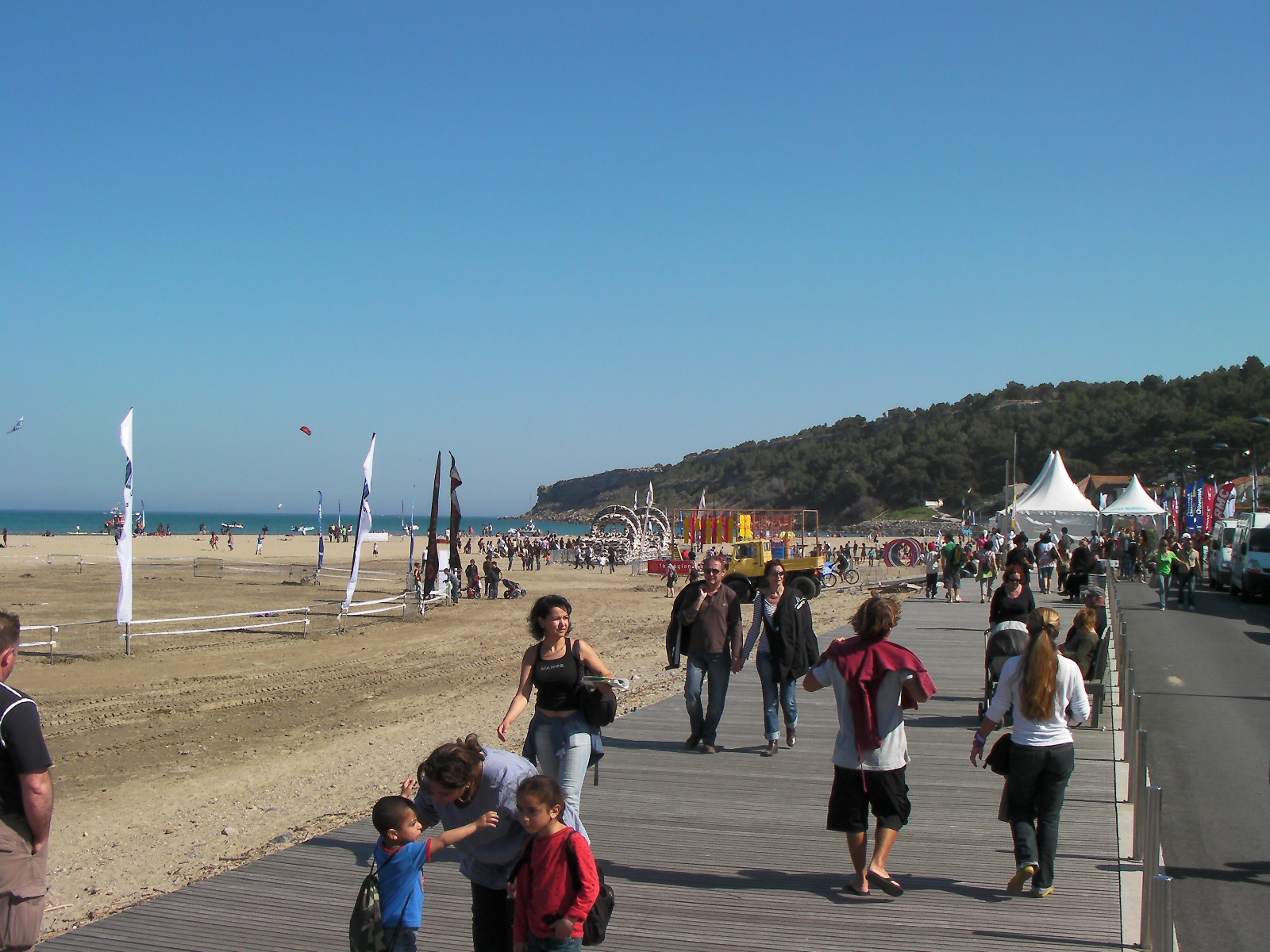 Un petit tour au Mondial du vent ce samedi après-midi, histoire de voir ce que l’organisation avait concocté pour cette 14ième édition du festival multiglisses de Leucate/La Franqui. Si le vent de Sud (!) plutôt léger n’a pas été à la hauteur des espérances, il a du s’en falloir de peu. Les amateurs de la longue distance au programme ont en effet pu tirer de longs bords puisqu’ils étaient en majorité équipés d’ailes de 14/17m², montées en 30 voire 40 m de lignes et chaussés de boards de Race spécifiques. Au moment de repartir, Il n’était pas exclu par le staff de tenter une manche en fin d’après-midi.