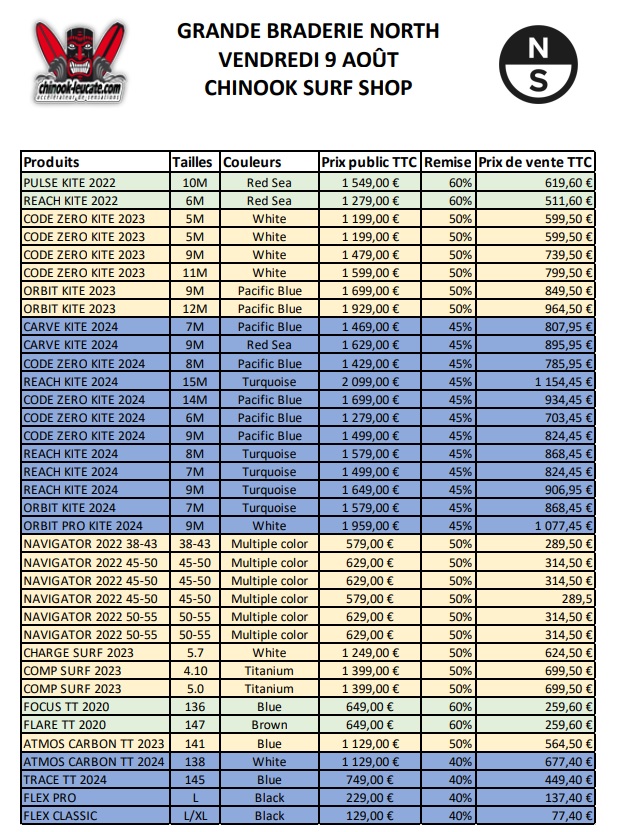 Chinook Leucate est ouvert du mardi au samedi de 9h30 à 12h30 et 15h à 18h30 / fermé dimanche et lundi. Pour joindre le shop > 04 68 40 17 17 et contact@chinook-leucate.com. Commandes en ligne sur www.chinook-leucate.com avec livraison classique ou retrait Drive sans frais (au choix lors de la commande).