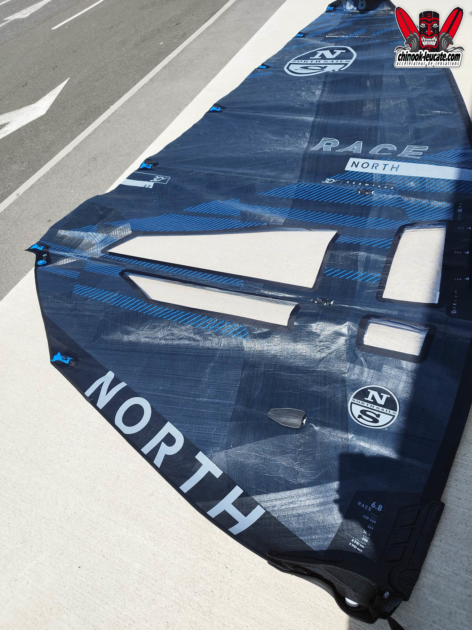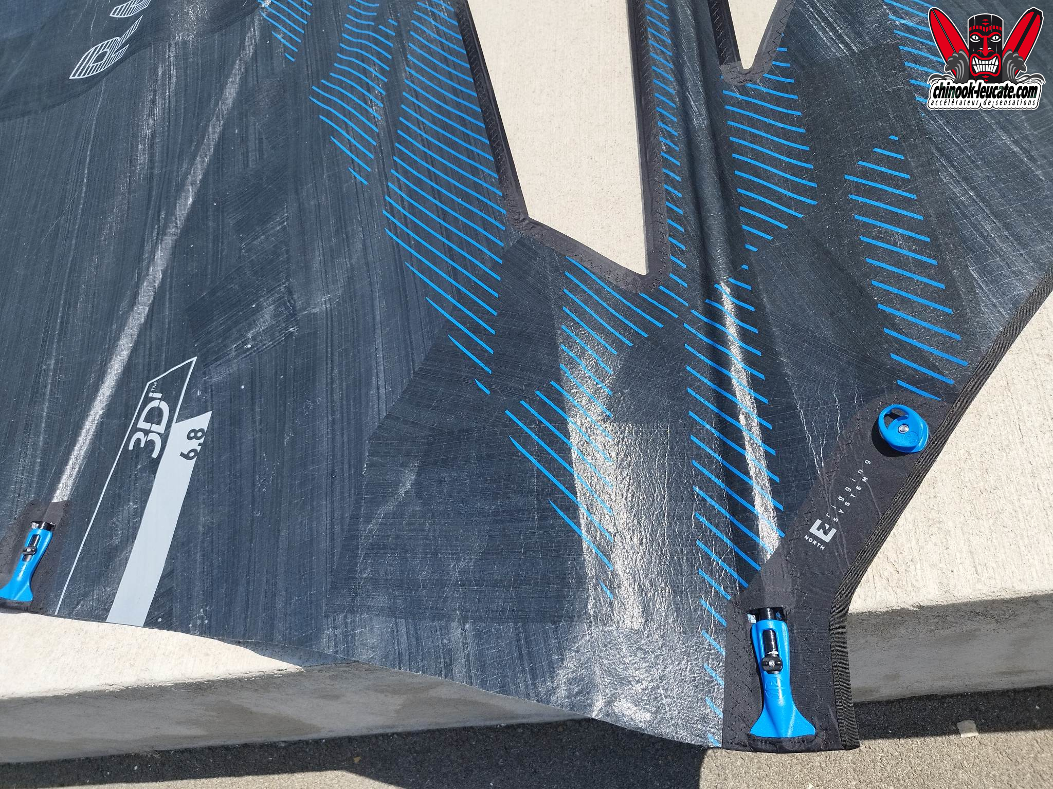 « Des sensations inédites dès le gréage et à la manip avec les tissus ultra soft au toucher qui inspirent confiance sur le long terme tant les marques, bruits et plis semblent absents. Tensions fermes exigées sur le réa guidant 2 poulies prévu pour une rallonge North spécifique et feeling direct ultra light et réactif dès les premiers bords sur l’eau. Manœuvres, jibes, rafales, pumping, ça donne envie de rider des heures tant on sent la souplesse et la nervosité du profil verrouillé sont flagrantes avec peu d’inertie et de fatigue pour tenir la belle. Wish court, quasi pas de main arrière, on peut toiler au surf sans souci afin de sentir encore mieux les relances et trouver ses marques dans les gros appuis. Un parfum de nouveautés tant dans les sensations que dans la conception qui donne envie d’y revenir et d’exploiter le potentiel de cette construction unique sur le marché. Prochain coup de Sud-Est peut-être… » Merci à lui! 🙂