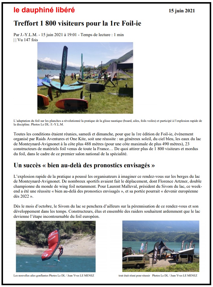 Le rendez-vous incontournable pour les adaptes de vol aquatique, c’est la Foil’ie au lac prévue cette année le week-end du 14 et 15 juin à Monteynard! Organisé par les associations One Kite et Raids & Aventures, ce gros week-end de ride entend bien profiter du légendaire thermique des montagnes pour rassembler tous les amateurs de kitefoil, windfoil et wing. Plus qu’une conviviale, c’est un véritable salon à ciel ouvert pour les pros, amateurs, curieux avec de très nombreuses marques présentes pour vous faire essayer les nouveautés 2025. Toutes les infos et contact sur la page Facebook de l’évènement. A ne pas rater! 🙂