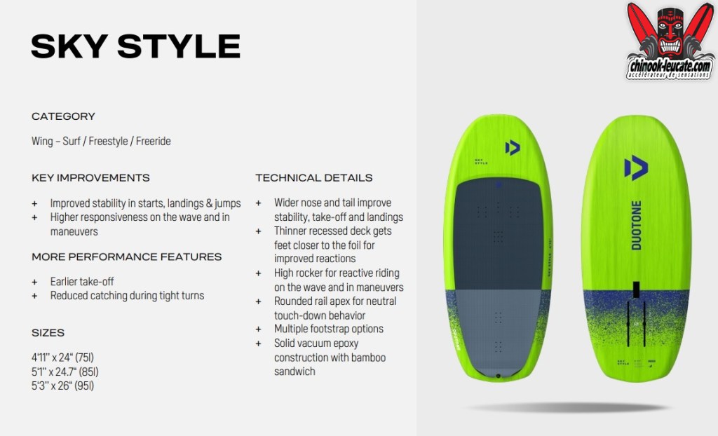 La news matos du jour, c’est l’arrivée au shop des premières pièces de la toute nouvelle gamme Wing boards Duotone 2025! Shapes revus en profondeur, nouvelles répartition des volumes, modèles inédits (Downwinder Slim), construction SLS full sandwich PVC Biax Carbon ou Sandwich Epoxy Bamboo, le niveau de performances et de qualité monte encore d’un cran avec des planches finition custom qui gagnent en poids, en sensations et en rendement général sous les pieds. Sky Start pour débuter, Sky Free pour progresser, Sky Style sans limite pour envoyer fort ou Skybrid pour combler le rider entre shapes compact et typés downwind, il y a déjà quasiment tous les modèles disponibles sur commande et en premier stock en magasin. Des nouveautés 2025 qui font envie, à découvrir en rayon et sur chinook-leucate.com. 🙂