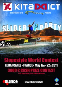 C’est au tour de Barcarès d’être sous les feux de l’actu glisse et cela pas plus tard que du 21 au 27 mai. Durant une semaine, la Slider Party use les modules à coup de câble et de kite puis est rejoint samedi 26 et dimanche 27 par le festival Gliss’n Rock qui ouvre ses portes tout en y intégrant le contest Wake & beach 2012 sur le site du Kum Wake Park tout proche du téléski nautique. Au programme donc de la zique avec les concerts, du SUP, du wake, du kite, des initiations, des catégories open et pro avec du gros niveau et du prize money bref, ça va envoyer la soude à Barca pendant une semaine.