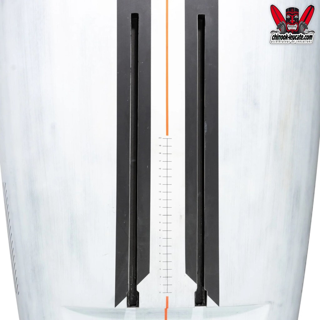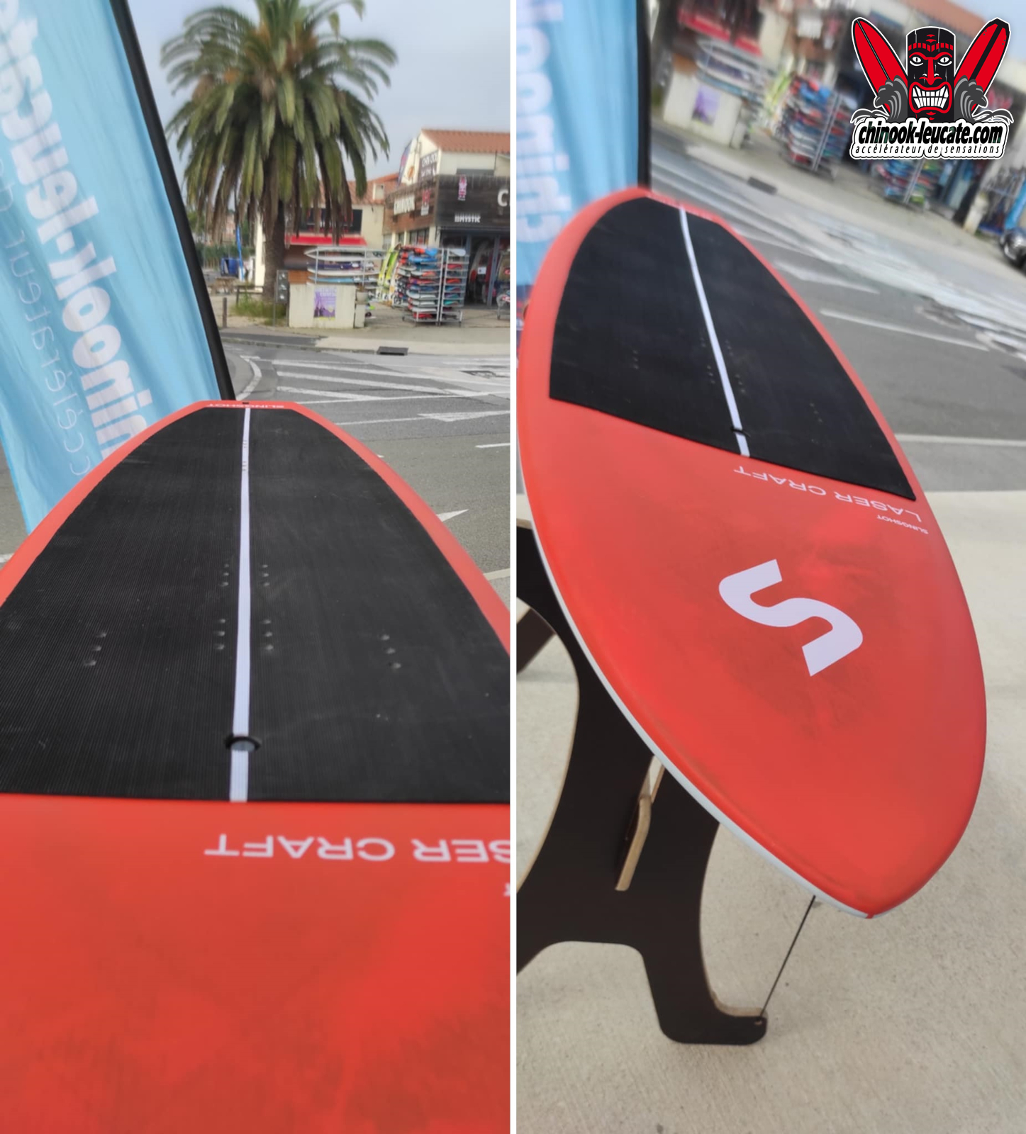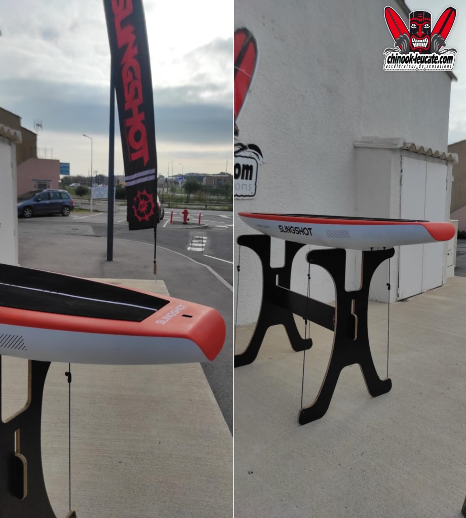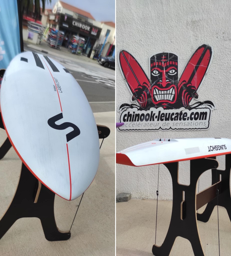 La bonne nouvelle du jour, c’est que ça n’est pas parce que le Père Noël a fini sa tournée que les cad… heu nouveautés 2025 ne continuent pas leur entrée au shop! Preuve en est avec l’arrivée d’une des premières Slingshot Laser Craft v1 désormais dispo en test et à la commande au magasin. Pour donner sa vision d’une gamme polyvalente light wind, Sup foil, mid lenght et downwind, la marque américaine dont les bureaux donnent sur les meilleurs spots de l’Oregon a « un peu » bossé son sujet en développant comme à son habitude un shape vraiment original et carrément abouti. Construction carbone très légère et nerveuse, carène à décrochement, tail évidé, surface mouillée réduite, rails de foil à entrée ouverte par l’arrière toujours aussi pratiques, inserts de straps et pont légèrement concave avec pads intégral, on peut dire que les atouts sont nombreux pour couvrir toutes ces disciplines où chaque détail compte. Un beau jouet à essayer en wing ou à la pagaie, à découvrir en rayon et sur chinook-leucate.com. 🙂